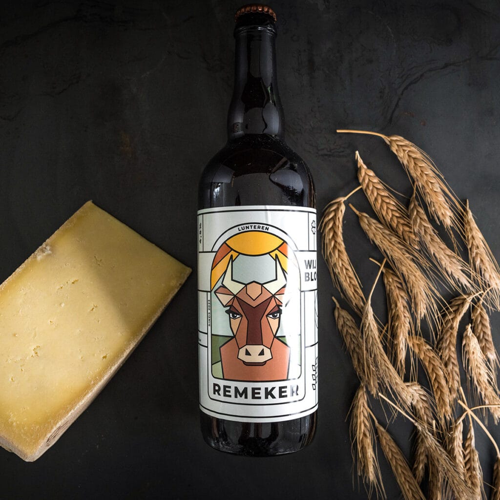 Das Remeker Weibier entstand aus unserer eigenen Molke: einem Nebenprodukt der Käseherstellung, reich an Eiweißen, Vitaminen und Mineralien. Daraus entstand eine Idee – und zusammen mit der Brouwerij Kleiburg und der Brouwerij Het Aambeeld machten wir daraus ein besonderes Bier.